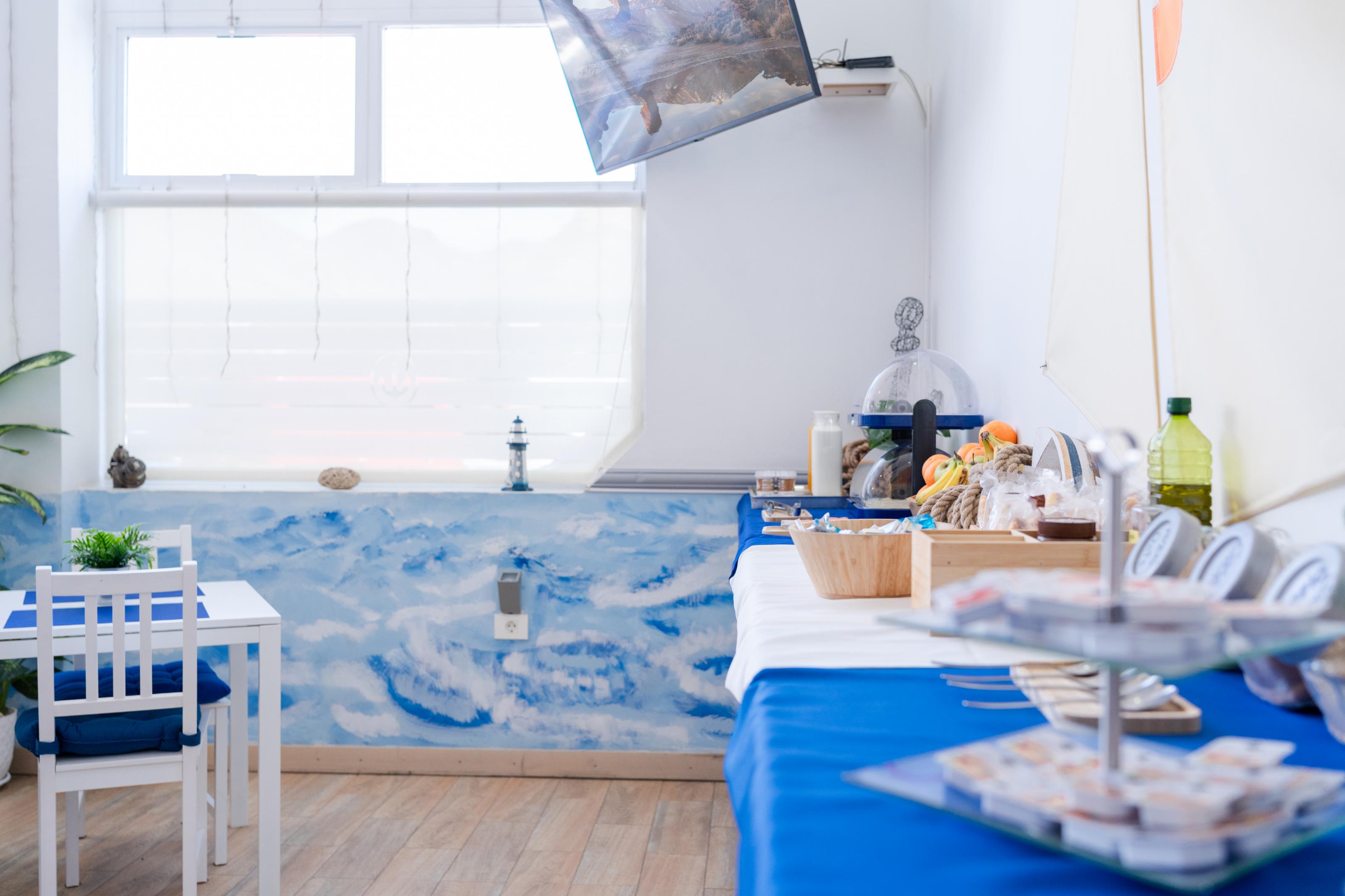 We offer spaces wrapped in a marine theme. We have double rooms where you can rest.